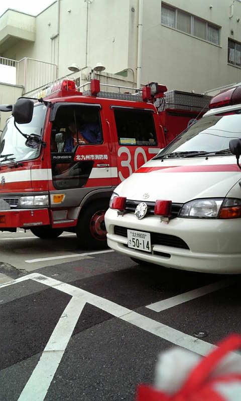 教室での実技なのに消防車と救急車が駐車場に・・・・